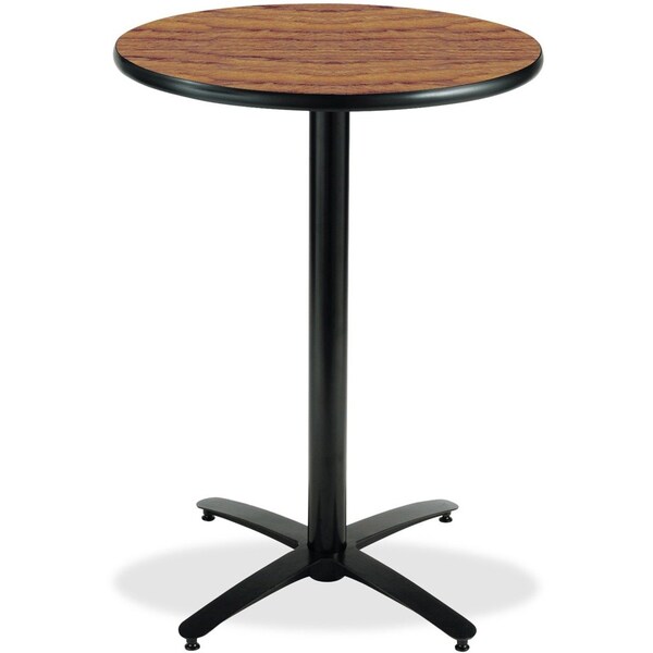 KFI 30" Round Bar Height Breakroom Table, Medium Oak Finish, Arched X-Base, 42 W, 30 L, 42 H (Discontinued)