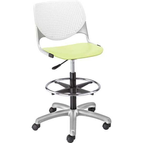 Poly Adjustable Stool, Perforated Back, Color: White, Lime Green