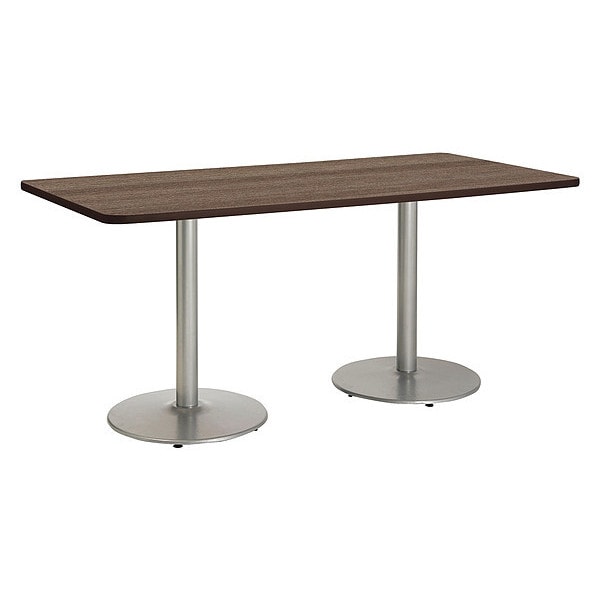 KFI Mode 42" x 96" Conference Table with Studio Teak Top, Round Silver Base, Bistro Height