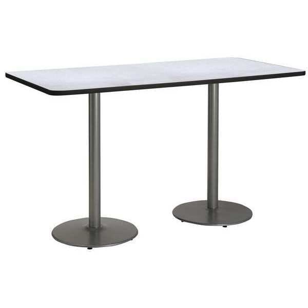 Rectangle KFI 30" x 72" Conference Table with Grey Nebula Top, Round Silver Base. Bistro Height