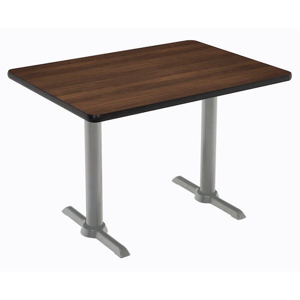 Rectangle KFI Mode 30" x 60" Conference Table, Walnut Finish, Silver T-leg Base, Bistro Height