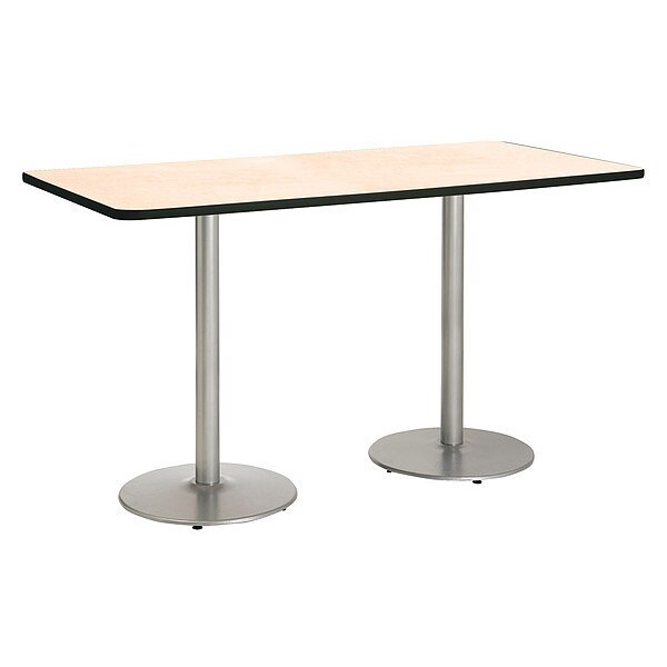 KFI Mode 42" x 96" Conference Table, Natural Finish, Round Silver Base, Bistro Height