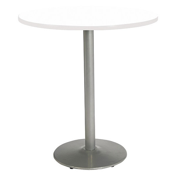 KFI Mode 48" Round Top Breakroom Table, Designer White Finish, Round Silver Base, Bistro Height