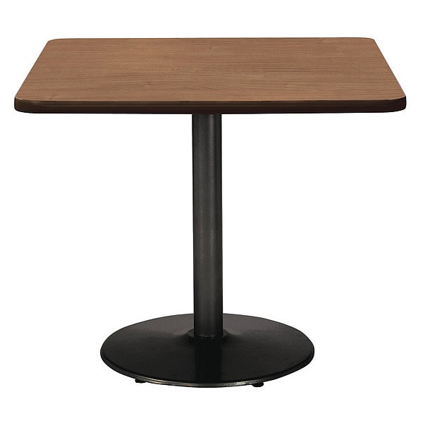 KFI Mode 42" Square Top Breakroom Table, Round Black Base, Standard Height, River Cherry Finish