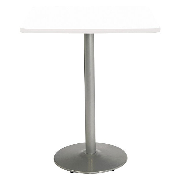 KFI Mode 42" Square Top Breakroom Table, Designer White Finish, Round Silver Base, Bistro Height