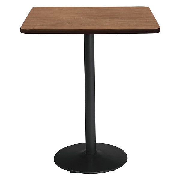 KFI Mode 42" Square Top Breakroom Table, River Cherry Finish, Round Black Base, Bistro Height