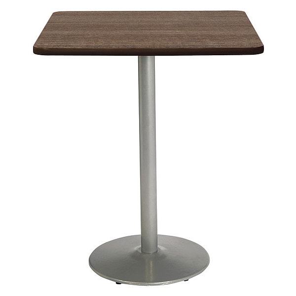 KFI Mode 42" Square Top Breakroom Table, Studio Teak Finish, Round Silver Base, Bistro Height