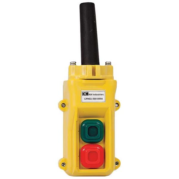 Pendant Control Station, Number of Operators 2, Number of Pilot Lights 0, Legend On/Off, Type of Operator Push Button, Action Maintained/Maintained, Operator Color Yellow, Contact Form 1NO/1NC, Mechanical Interlock No, NEMA Rating 4X, Contact Rating 0.4A @ 120V DC, 2A @ 24V DC, 5A @ 125/240V AC, IP Rating IP65, Hub 19/64 in to 13/32 in, Height 5.2 in, Width 3.1 in, Depth 1.5 in, Enclosure Material Thermoplastic, Enclosure Color Yellow, Standards cUL, UL Listed
