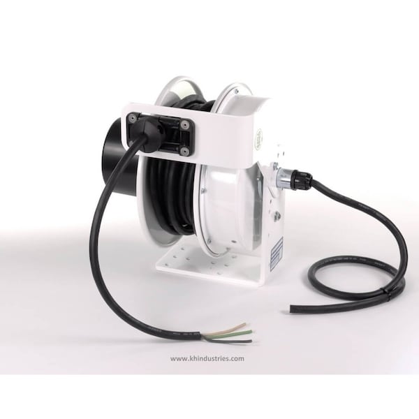 KH Industries Retractable Cord Reel, 20 Amp, White Finish, 50ft 12/3 SOOW, Blunt Cut
