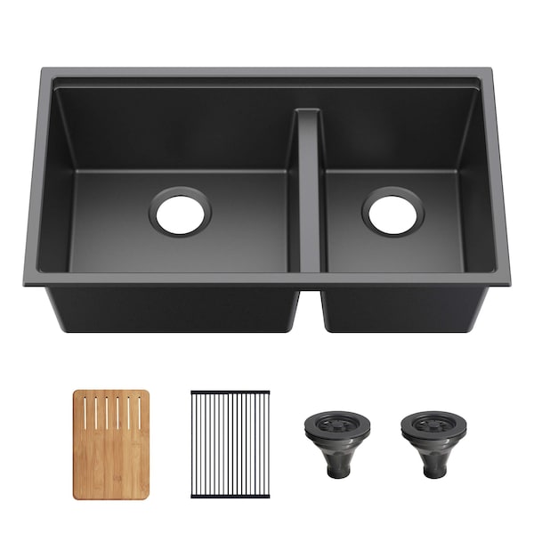 33in Undermount Workstation Double Bowl Quartz Kitchen Sink
