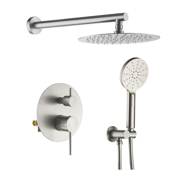 Elevate your shower experience extraordinarily with this Kibi Circular 2 function Shower System. This shower system is not only sleek in simplicity but also practical in function, which includes 10 in. thin profile brass rain shower, 3 function premium ABS hand shower, 60 in. stainless steel extended hose, solid brass construction, branded pressure balance valve as well as all necessary escutcheon plate and installation hardware.