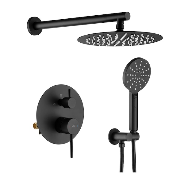 Circular Pressure Balanced 2-Function Shower System with Rough-In Valve, Matte Black