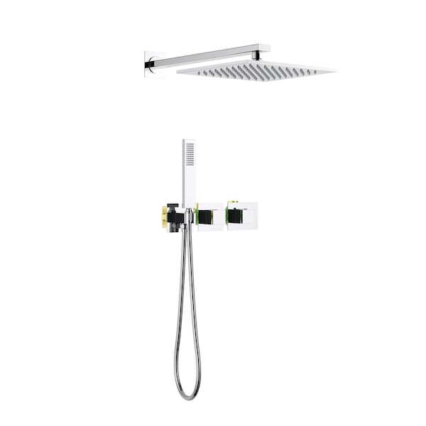 - •Dual Functional Design: This system offers two distinct shower functions, combining a 10" stainless steel rain shower for a luxurious rainfall experience with a brass handheld shower head for versatile and targeted rinsing.