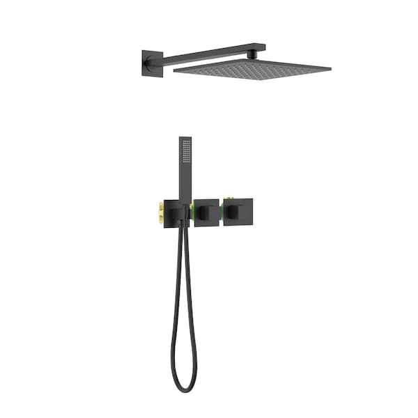 Cube 2 Function Thermostatic Shower System With Rough In Valve - Matte Black