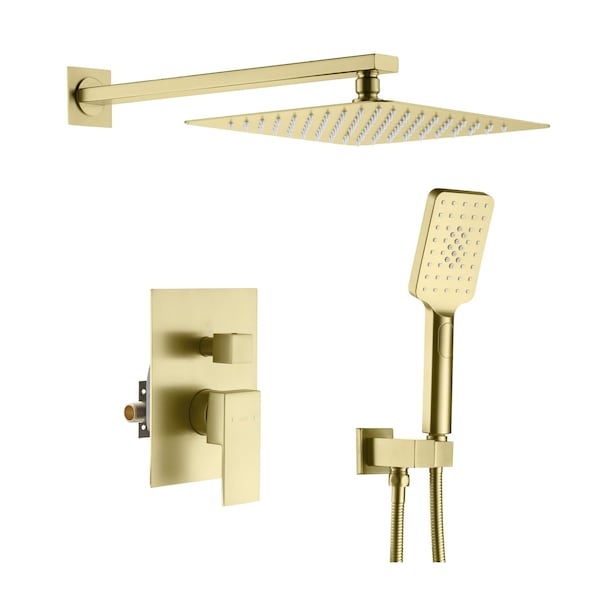 Cube Pressure Balanced 2-Function Shower System with Rough-In Valve, Brushed Gold