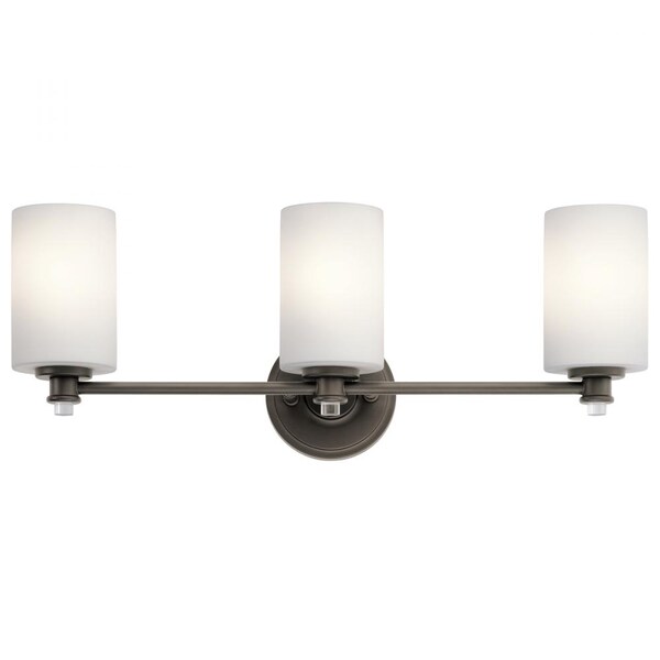 Joelson Delivers A 3-Light Vanity That's Transitional And Versatile. This Fixture Showcases Retro-Inspired Light Bulb Sockets With Beautiful Satin Etched Cased Opal Glass. For Added Ambiance, Joelson Is Appointed With An Olde Bronze(R) Finish. This Fixture Features LED Light Bulbs Which Are Energy-Star Certified.