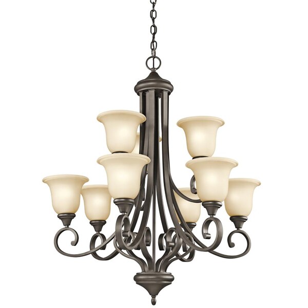 This 9 Light LED Chandelier From The Monroe(Tm) Lighting Collection Is A Unique Twist On Traditional Americana. The Distinctive Metal Base Is Touched With An Olde Bronze Finish, Which Beautifully Complements The Umber Etched Glass Adornment. With This Design, We Have Turned Tradition On Its Head To Create An Updated Look.