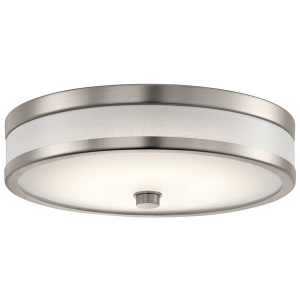 The Pira Collection 12In.In. LED Flush Mount Features Sleek Lines And Smooth Edges Create A Soft Look And Relaxed Ambience, Enhanced By A Champagne Finish. A Unique Wood Linen Or White Vinyl Shade And Tinted Glass With Painted Linen Adds Instant Intrigue And Sophistication In Any Home Setting.