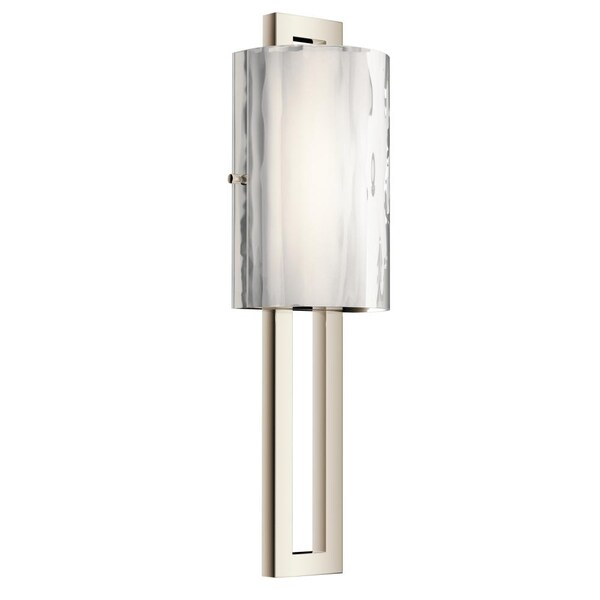 This 1 Light LED Wall Sconce From The Jewel Collection Features A Hammered Clear Glass Over A White Acrylic Shade, Softly Diffusing The Light. The Polished Nickel Finish Completes This Contemporary Statement Piece.