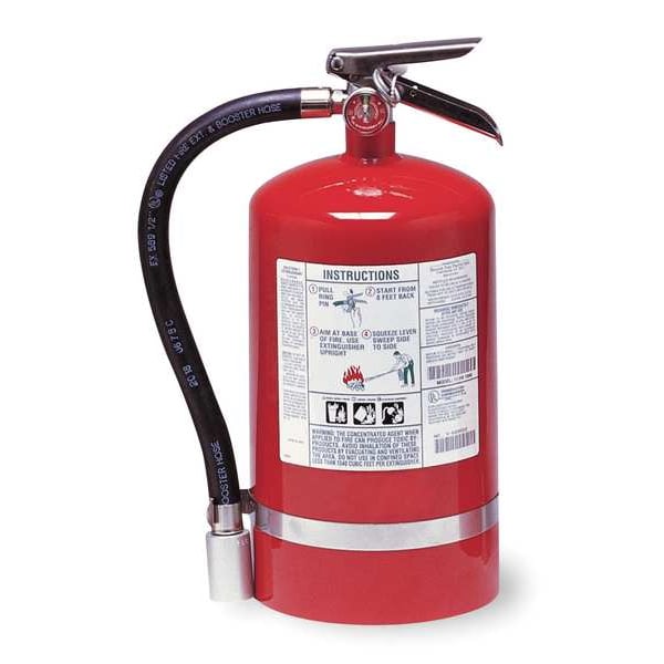 Fire Extinguisher, Charging Rechargeable, Container Type Cylinder, Cylinder Color Red, Cylinder Diameter 7 1/4 in, Cylinder Height 16 3/16 in, Cylinder Material Steel, Discharge Time 11 sec, Extinguisher Capacity 11 lb, Extinguisher Class ABC, Extinguishing Agent Material Composition Halotron, Extinguishing Agent Type Clean Agent, Features Instruction Label Using Graphics to Show Steps Required to Operate Extinguisher, Safety Pin, Fill Type Charged and Filled