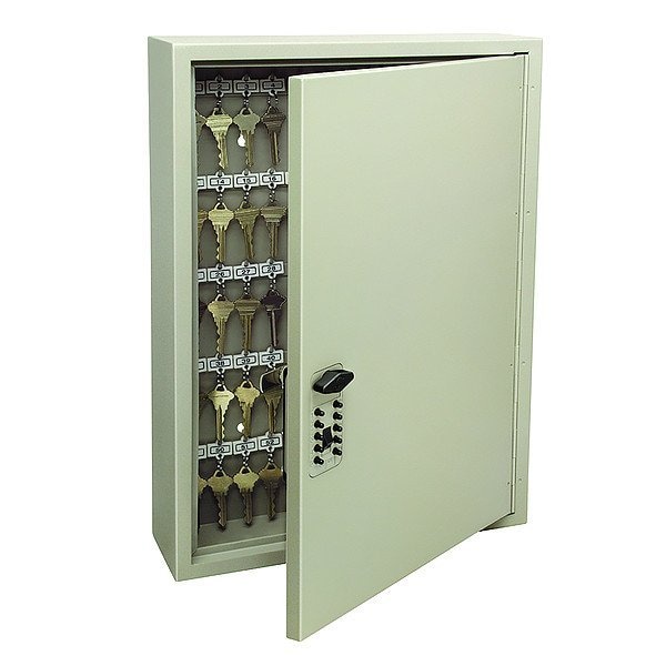 Key Control Cabinet, Cabinet with Pushbutton Combination Lock, Key Capacity (Units) 60, Height 19 1/2 in, Depth 4 in, Width 13 3/8 in, Steel, Built-In Key Hooks, Door Full Length, Finish Enamel
