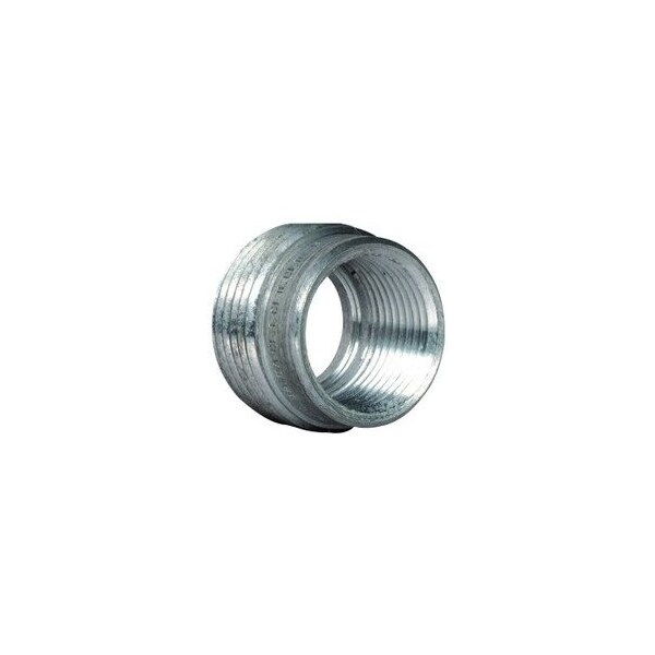 Aluminum reducing bushing, 1 inch male by 1/2 inch female, designed for electrical conduit systems, corrosion-resistant