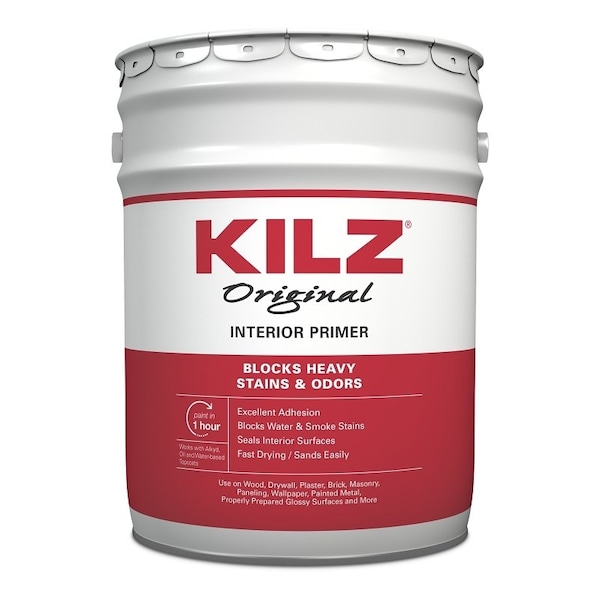 Kilz original primer blocks most stains including water, smoke, tannin, ink, pencil, felt marker and grease and seals pet and smoke odors Use on interior surfaces including wood, drywall, plaster, paneling, wallpaper, masonry, brick, painted metal and properly prepared glossy surfaces
