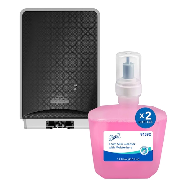 This bundle includes a dispenser and a compatible refill for immediate use in commercial environments. Dispenser details: Soap/Sanitizer Dispenser, Color Black, Mount Type Wall, Product Type Soap/Sanitizer Dispenser, Material Plastic, Series ICON, Finish Chrome Plated, Glossy, Compatible with Manufacturer Model Number 12979, 34643, 52788, 91590, 91591, 91592, Refill Size 1,200 mL, Operation Mode Automatic, Power Source Battery, Batteries Included Yes, Overall Depth 4 in, Overall Height 11 1/2 in, Overall Width 7 1/2 in, Counter Hole Diameter Not Applicable, Maximum Countertop Thickness Not Applicable Refill details: Skin Cleanser, Individually Wrapped Not Applicable, Package Quantity 2 The refill is designed to work seamlessly with the included dispenser, helping facilities maintain efficiency and reduce downtime. Ideal for restrooms, breakrooms, and other high-traffic commercial facilities.