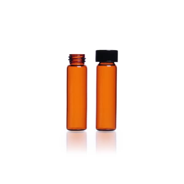 - Closed-top black phenolic closures with PTFE-faced white rubber liners, unattached