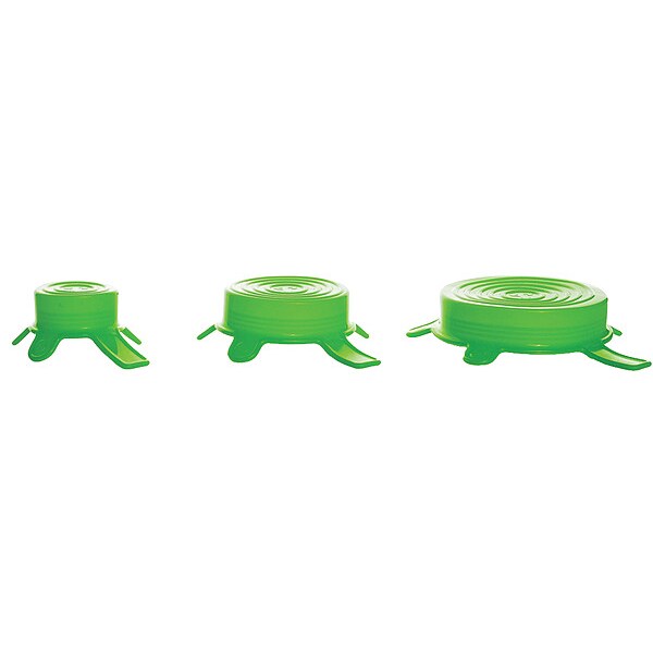 Cap, Diameter 44 mm, 66 mm, 84 mm, Screw Closure Size 44-61 mm, 66-79 mm, 84-100 mm, Closure Material Silicone, Product Type Lid, Closure Color Green, Closure Liner Material Unlined, Closure Type Slip On, Autoclavable Yes, Special Features Fits On Beakers, Flasks, Bottles, Cylinders, Plastic, and Glass Products, Package Quantity 3