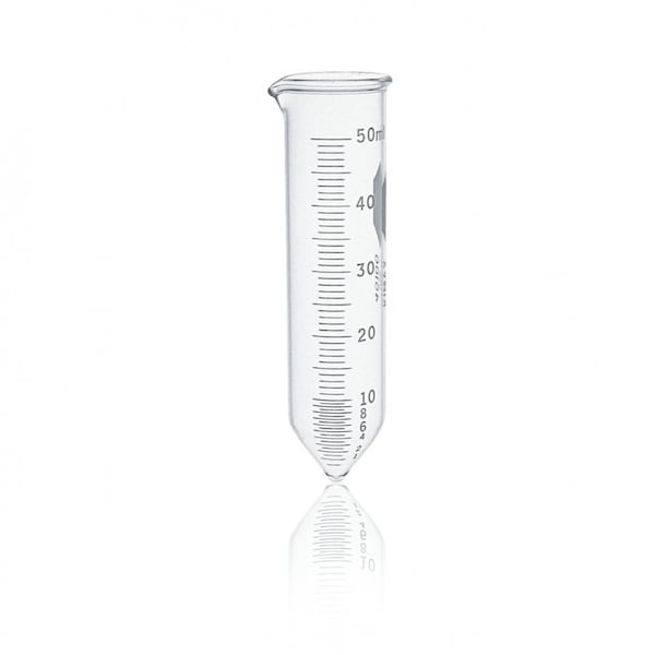 Conical Centrifuge Tube, Nominal Capacity - Metric 50 mL, Body Diameter - Metric 29 mm, Nominal Capacity - English 1.69 oz, Overall Height - Metric 118 mm, Body Material 3.3 Borosilicate Glass, Maximum Relative Centrifugal Force 2,000 x g, Tube Type Centrifuge Tube, Body Color Clear, Graduated Yes, Graduation Increments - Metric 0.5 mL, 1 mL, For Use With Centrifuges, Special Features Legend and Marking Spot are Printed in Durable White Ceramic Enamel, Scale, Basic Material Glass