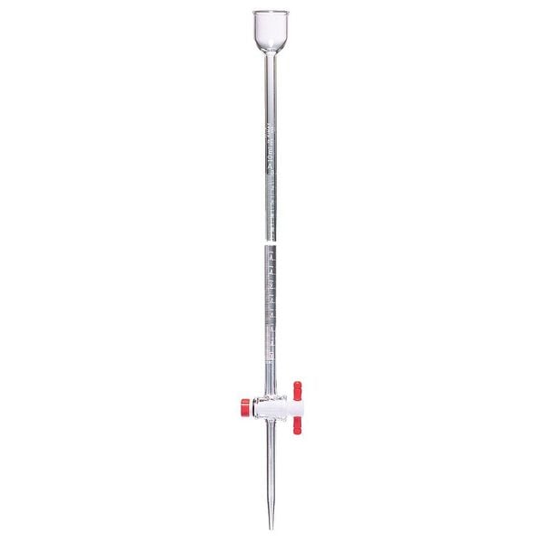 Funnel Fill Micro Buret, Capacity - Metric 10 mL, Capacity - English 0.3 fl oz, Tolerance +/-0.02 mL, Overall Height - Metric 810 mm, Buret Type Straight Bore Buret, Graduation Increments - Metric 0.02 mL, Graduated Yes, Minimum Graduation - Metric 0.02 mL, Maximum Graduation - Metric 10 mL, Material 3.3 Borosilicate Glass, Closure Included Yes, Glassware Class A, Stopcock Material PTFE, Special Features Chemical Resistant, Color Clear, Closure Material PTFE, ASTM Specification D974, E542, E694