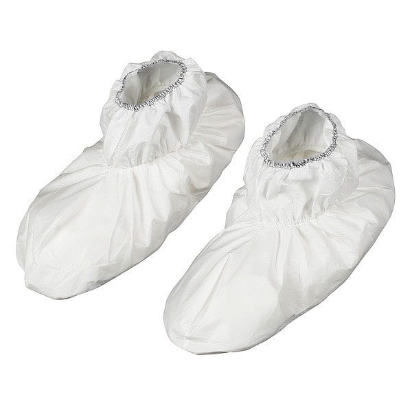 Shoe Covers, Anti-Static No, Closure Type Elastic, Color White, Federal 209E Cleanroom Class 100,000, Hazard Type Non-Hazardous Dry Particulates, Non-Hazardous Liquids, Includes Slip Resistant Sole Yes, ISO Cleanroom Class ISO 7 (Class 10,000) and above, Liquid Dispersal Type Splash, Material SMS, Named Size XL, Packaging Bulk, Product Type Shoe Cover, Series Kimtech(TM) A7, Sole Material Vinyl, Specialized Hazard Type Bloodborne Pathogens, Standards ASTM F1670, Sterilization Status Non-Sterile