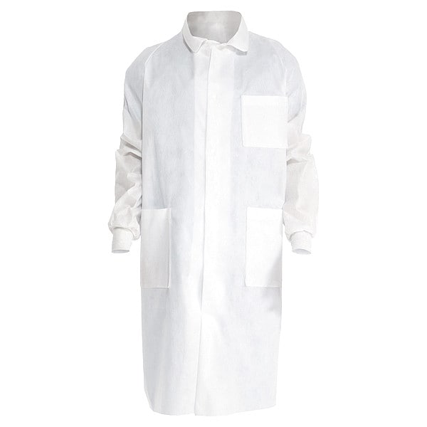 Lab Coat, Attached Hood No, Closure Type Snaps, Collar Style Notched Lapel, Color White, Cuff Style Elastic Knit, Features Back Vent, Federal 209E Cleanroom Class 100,000, Gender Unisex, ISO Cleanroom Class ISO 8 (Class 100,000) and above, Material SMS, Named Size 2XL, Number of Pockets 3, Packaging Bulk, Product Type Lab Coat, Package Quantity 10