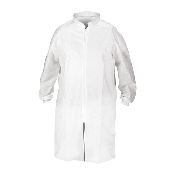 Lab Coat, Anti-Static No, Attached Hood No, Closure Type Zipper, Collar Style Mandarin, Color White, Cuff Style Elastic Knit, Federal 209E Cleanroom Class 100,000, ISO Cleanroom Class ISO 8 (Class 100,000) and above, Material SMS, Named Size M, Number of Pockets 0, Packaging Bulk, Pocket Location Not Applicable, Product Type Lab Coat, Package Quantity 25
