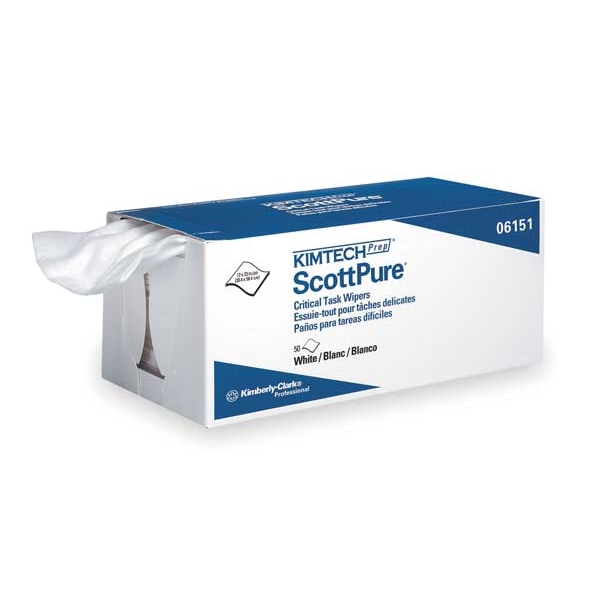 When you have wiping jobs where precision and reliability are essential, you can trust Kimtech Prep Scottpure Wipers. They are up to the task! These critical task wipers are engineered for excellent absorbency and low-lint wiping. Kimtech Prep Scotpure Wipers have low extractables (no binders or surfactants) and designed to work well with solvents (acid-, base- and solvent-resistant). They are made of low lint 100% rayon / polyester material (called spunlace) for cloth-like softness. These critical task wipes are popular for applications including clean manufacturing areas, printing and much more.