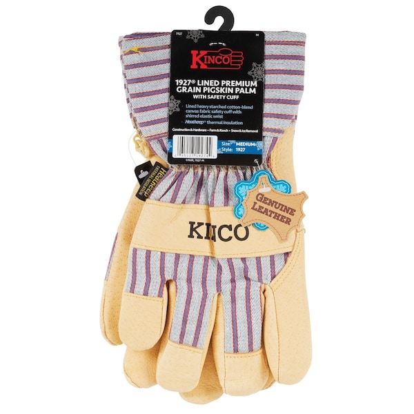 Otto Striped Mens Medium Pigskin Leather Palm Winter Work Glove