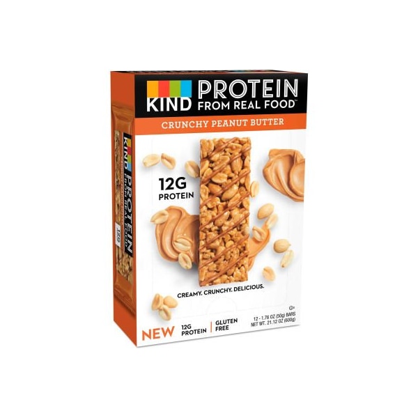 Kind protein bars, crunchy peanut butter, 1.76 oz., 12/box made with delicious ingredients like chocolate, caramel, white chocolate and peanut butter blended with simple and nutritious whole nuts and 12 grams of protein. this product arrives to most customers in 2-3 business days.