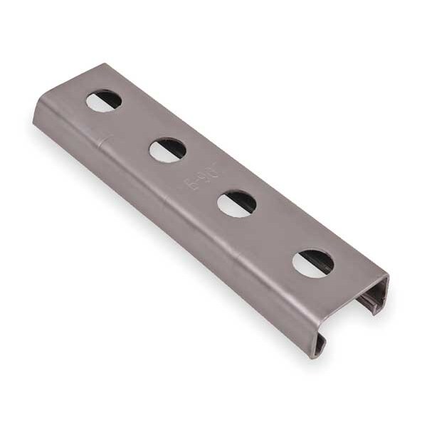 Strut Channel - Punched Hole, Slot Type Punched 1-Sided, Size 1 1/2 in x 3/4 in, Overall Length 10 ft, Overall Height 3/4 in, Overall Width 1 1/2 in, 304 Stainless Steel, Gauge 14 ga, Hole Size 9/16 in Diameter, Hole Spacing 1 1/2 in Center to Center, Style Single, Channel Type Punched, Silver, Finish Polished, Weight 0.82 lb