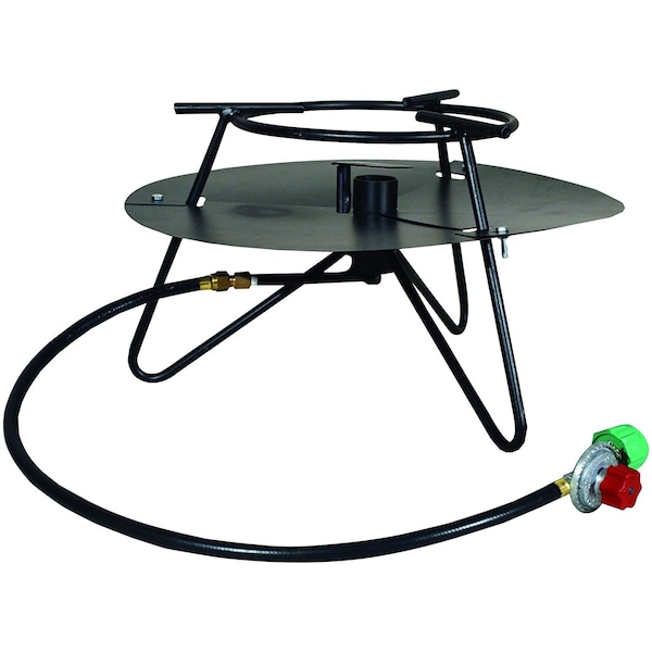 Boiling is the specialty of the King Kooker 12" Portable Propane Outdoor Cooker with Tripod Jet Burner. This high pressure, 105,000 BTU jet cooker with baffle is great for cooking large quantities of food in large boiling pots. Rotate the baffle over the flame to spread the heat. The cooker includes attachable heat shields and an adjustable regulator. Cook all your foods to perfection every time. Try the suggestions in the detailed instruction and recipe booklet, or create your own favorites. King Kooker lets you eat like a king.