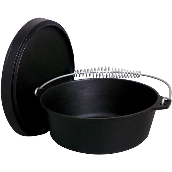 Great for use at the campsite or in the kitchen! King Kooker 12 quart cast iron dutch oven and lid. Cast iron construction allows for even heat distribution, eliminating cold spots. Wonderful for soups, stews, chili, jambalaya and gumbo! Excellent for roasting and frying! Pre-seasoned and ready to cook!
