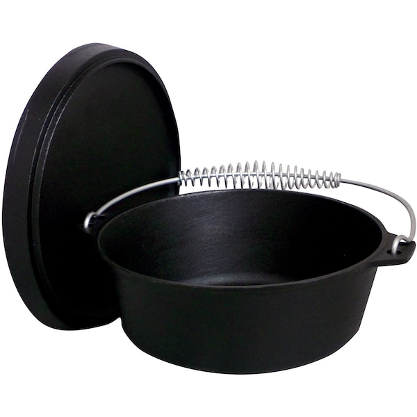 Great for use at the campsite or in the kitchen! King Kooker 8 quart cast iron dutch oven and lid. Cast iron construction allows for even heat distribution, eliminating cold spots. Wonderful for soups, stews, chili, jambalaya and gumbo! Excellent for roasting and frying! Pre-seasoned and ready to cook!