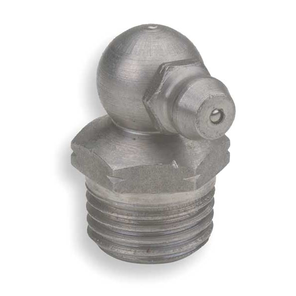 Grease Fitting, Grease Fitting Style Standard, Fitting Material Stainless Steel, Fitting Finish Unfinished, Fitting Head Angle 90 Degrees , Fitting Thread Size 1/4 In.-19, Fitting Thread Type BSPT, Overall Length 7/8 in, Max. Pressure 8,000 psi, Meets/Exceeds SAE J-534-C and DIN 71427, Package Quantity 5