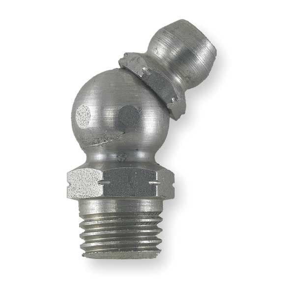 Grease Fitting, Grease Fitting Style Standard, Fitting Material Stainless Steel, Fitting Finish Unfinished, Fitting Head Angle 45 Degrees , Fitting Thread Size 1/8 In.-28, Fitting Thread Type BSPT, Overall Length 7/8 in, Max. Pressure 8,000 psi, Meets/Exceeds SAE J-534-C and DIN 71424, Package Quantity 5