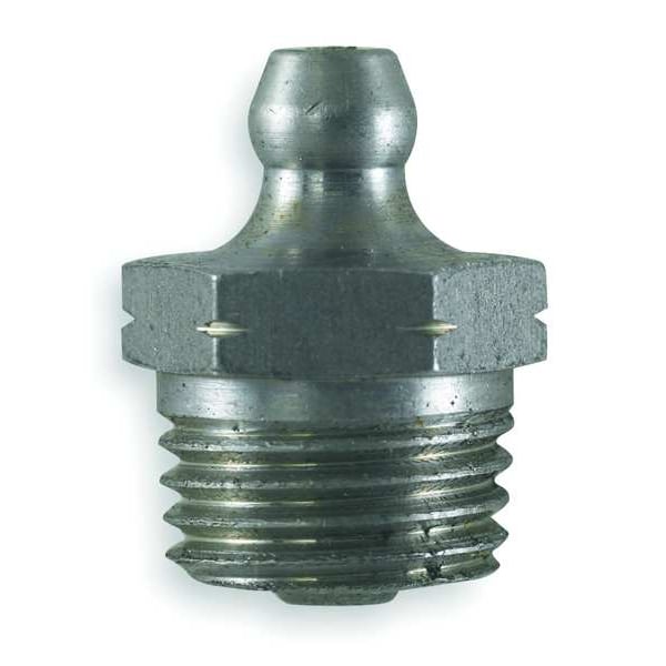 Grease Fitting, Grease Fitting Style Standard, Fitting Material Stainless Steel, Fitting Finish Unfinished, Fitting Head Angle Straight, Fitting Thread Size 1/4 In.-18, Fitting Thread Type PTF, Overall Length 7/8 in, Max. Pressure 8,000 psi, Meets/Exceeds SAE J-534-C and DIN 71412, Package Quantity 10