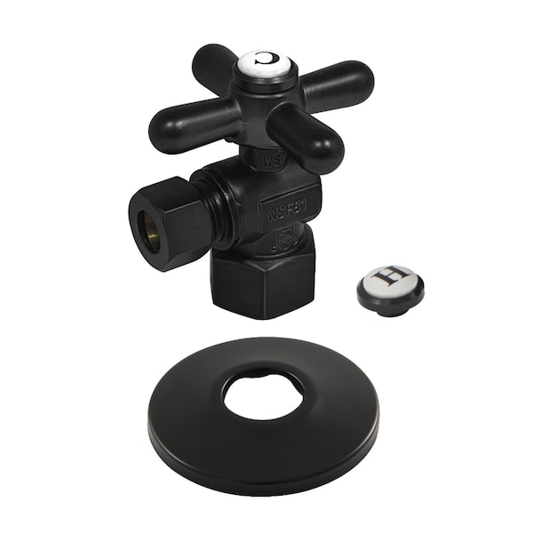 1/2" FIP X 3/8" OD Comp Quarter-Turn Angle Stop Valve W/ Flange, Black