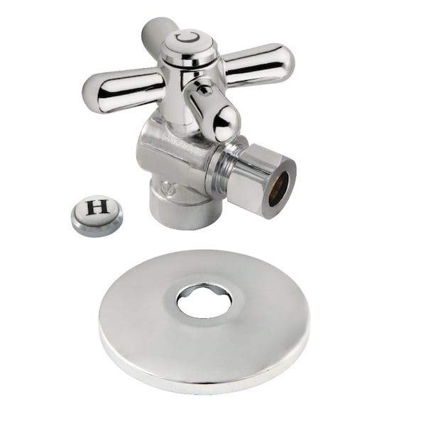 1/2" Sweatx3/8" OD Comp Quarter-Turn Angle Stop Valve W/ Flange, Chrome