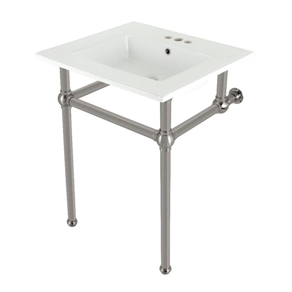 25 Console Sink with Brass Legs 4Inch, 3 Hole, WhiteBrushed Nickel