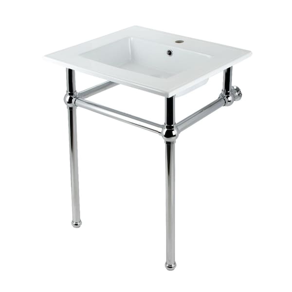 25 Console Sink with Brass Legs Single Faucet Hole, WhitePolished Chrome