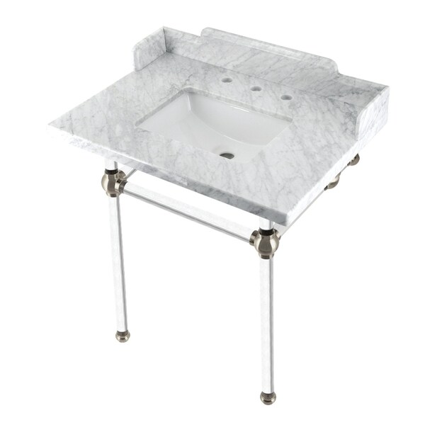 30 Carrara Marble Console Sink with Acrylic Legs, Marble WhiteBrushed Nickel